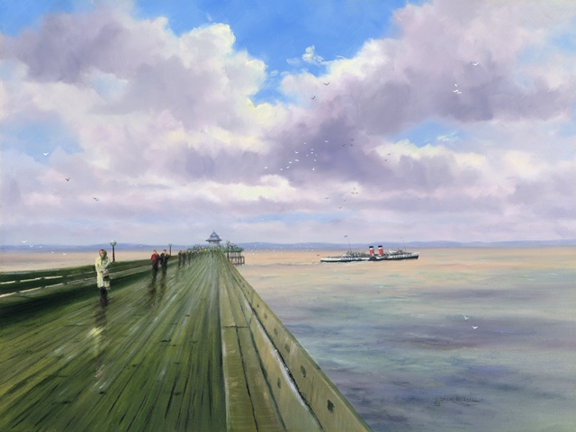 “The newly restored Clevedon Pier, with the steamship Waverley departing in the background.” Jack Russell MBE