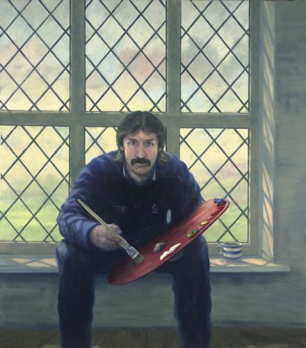 “This is the first painting I did after I retired from playing professional cricket. It’s an odd experience trying to paint yourself. I had to use a mirror, while at the same time remembering that the view is the reverse of the face that people see when they look at you direct. I used the window of my studio as the backdrop. The paint on the palette is freshly squeezed, ready for the start of a new painting adventure.” Jack Russell MBE