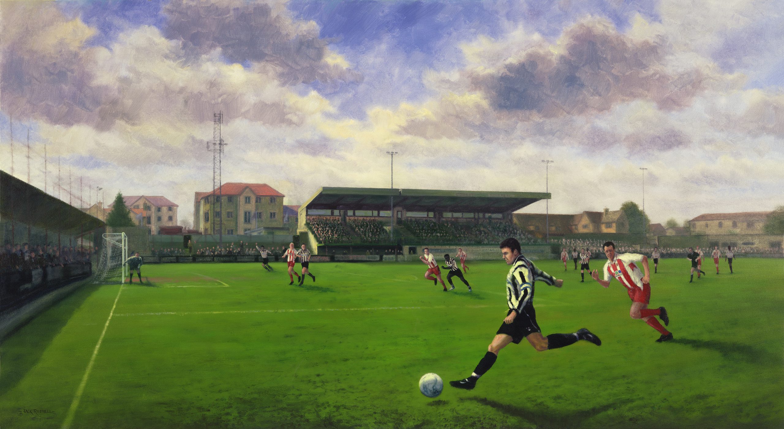 Now a housing estate this picture shows the last match at Forest Green Rovers’ old ground, “The Lawn”.”