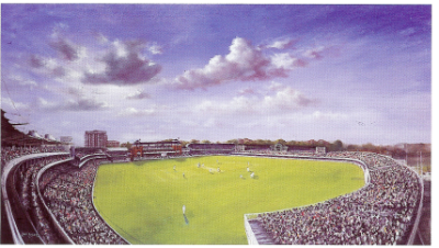 Limited edition print measuring 23″ x 33″ and signed by Sir Colin Cowdrey, Lt Col JR Stephenson, Brian Johnston, Godfrey Evans and Dickie Bird